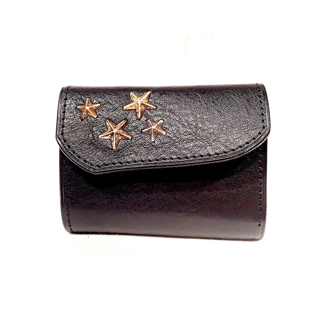 Groover Leather グルーバーレザー ブラック コンパクトウォレット 4スタースタッズ ミニ財布 革製品 革小物