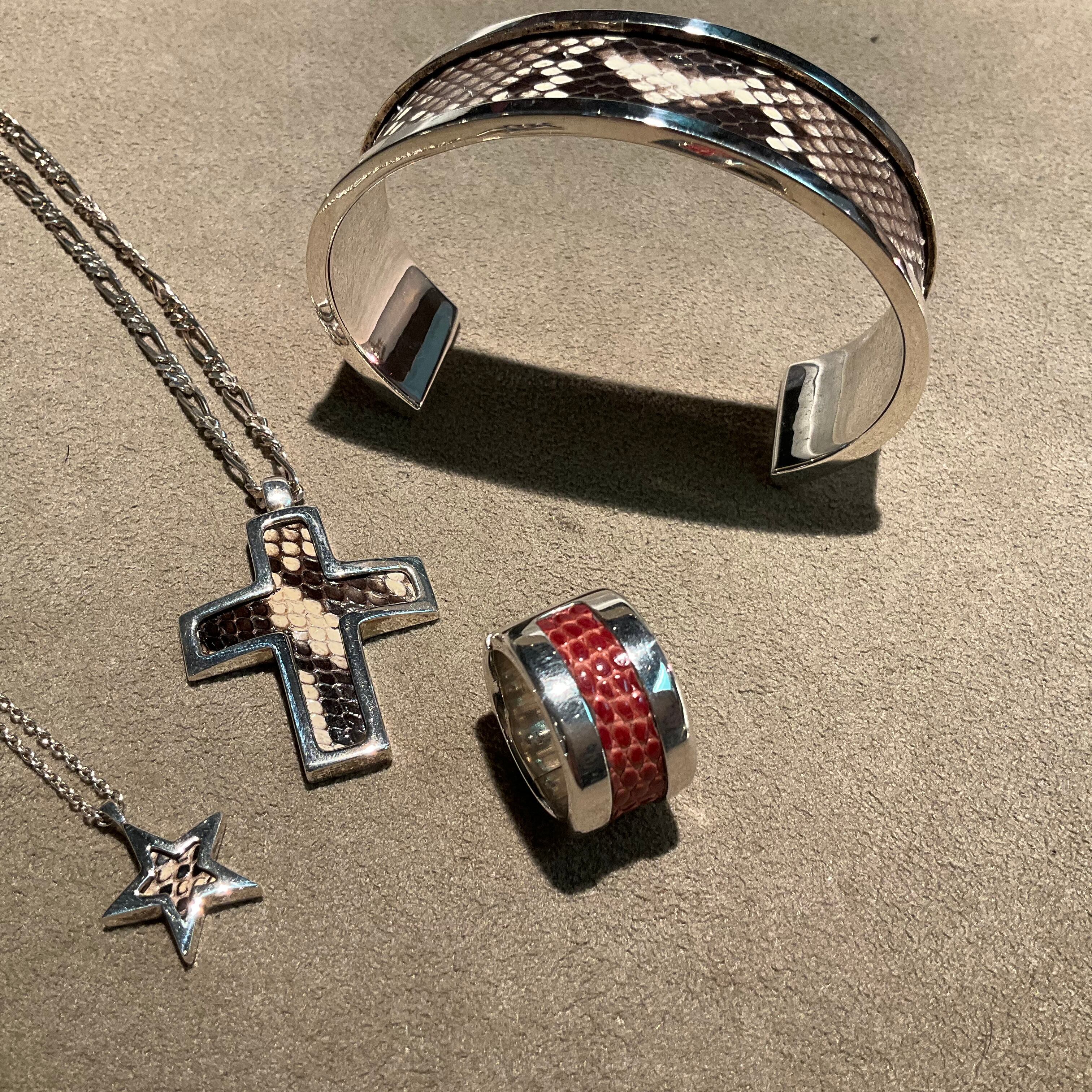 このビンテージシルバーペンダントは、蛇革の独特な洗練されたデザインが魅力です。シルバー925の素材を使用しているため、長持ちし、日常使いにも最適です。シンプルながら個性的な印象を与えるため、様々なスタイルに合わせてお楽しみいただけます。特別な一点物を身に着けて、自分だけの素敵なコーディネートを完成させてください!