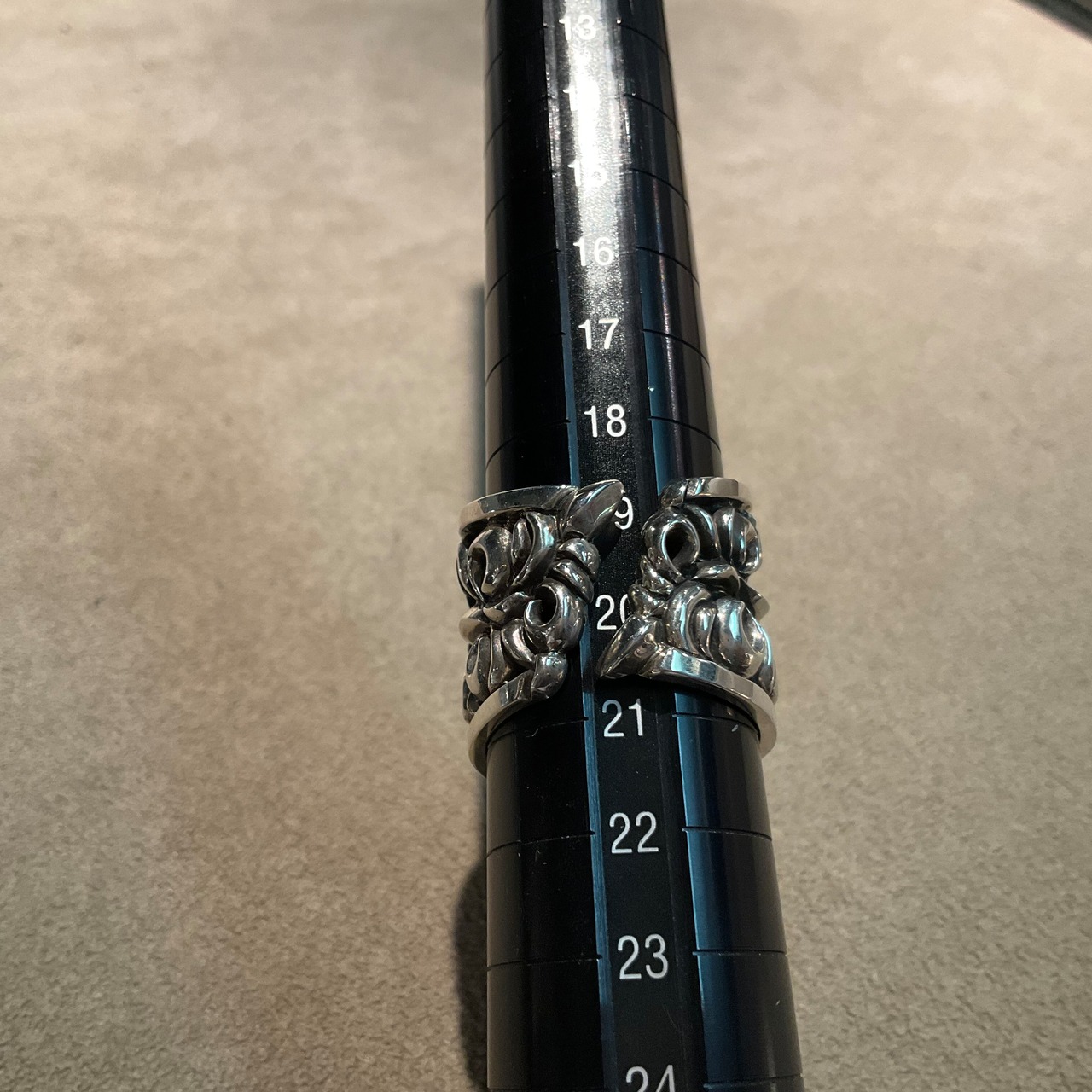 すべてのリングは、熟練の職人によって丁寧に手作りされています。そのため、1つ1つに異なる表情があり、特別な存在感を放っています。この一品を身に着けることで、自分だけのスタイルを楽しんでいただければ幸いです。