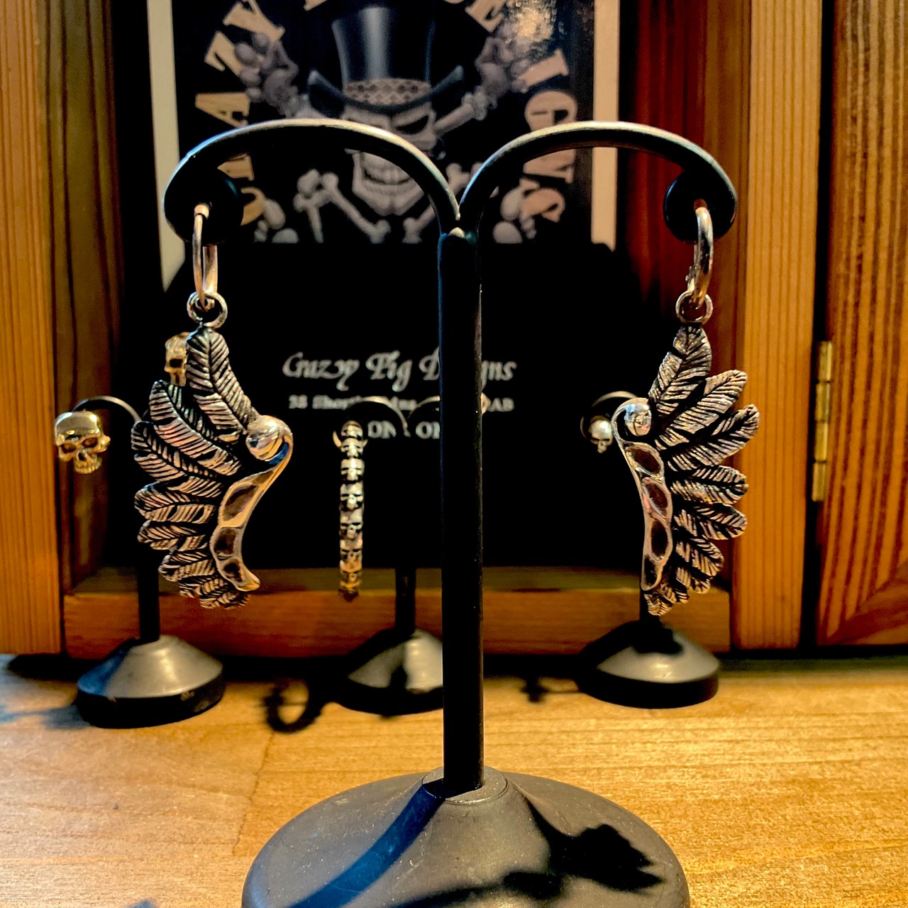 Crazy Pig Wing earrings pierce