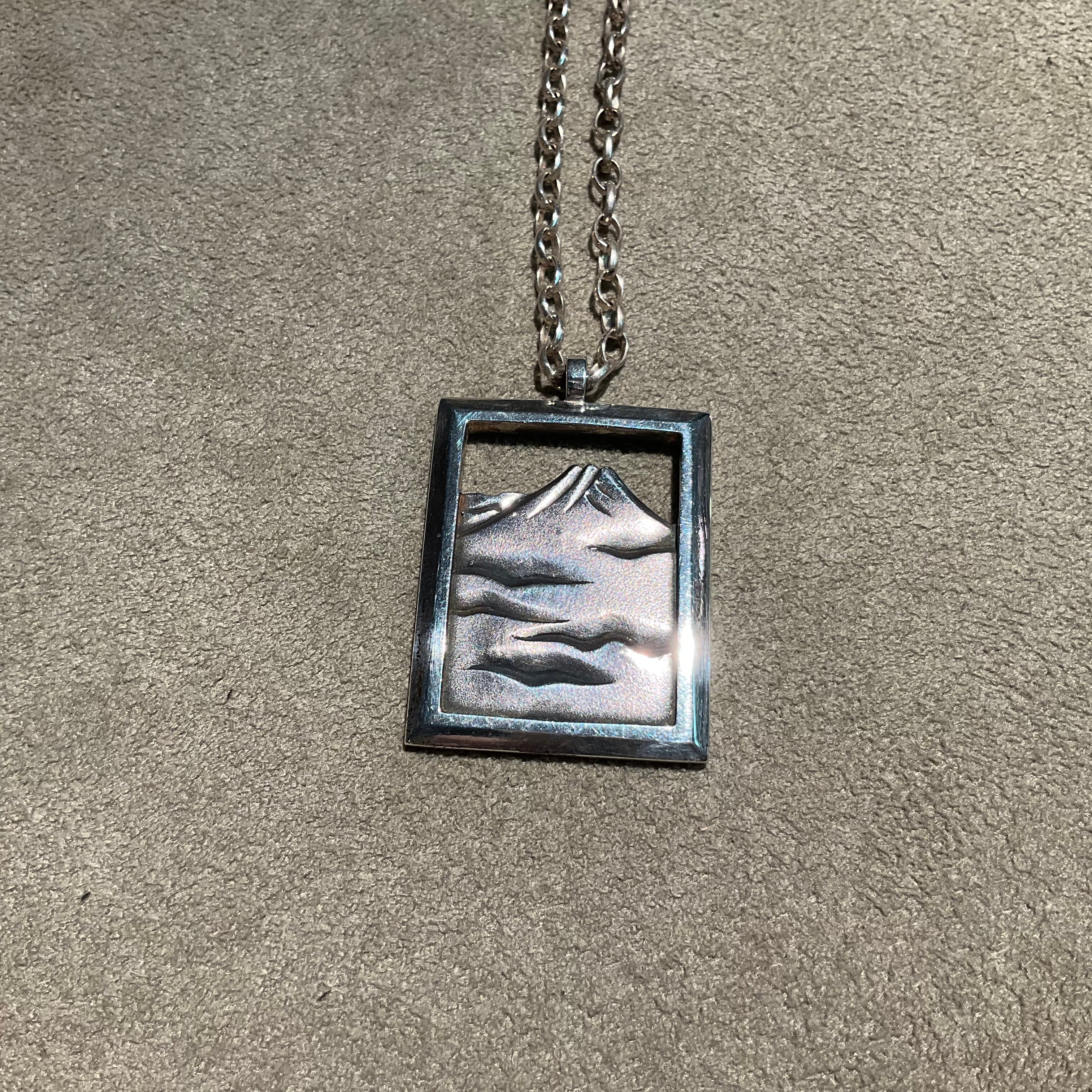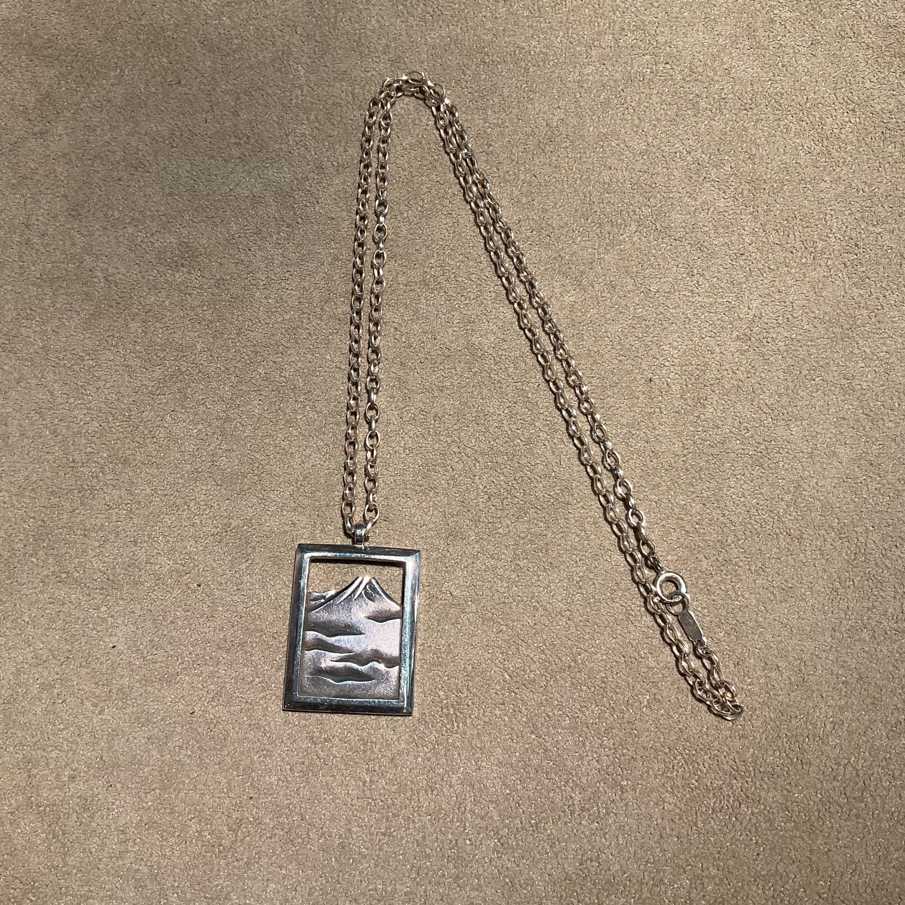 富士山 Square Flame Pendant SilverJewelry 世界遺産 MtFuji
