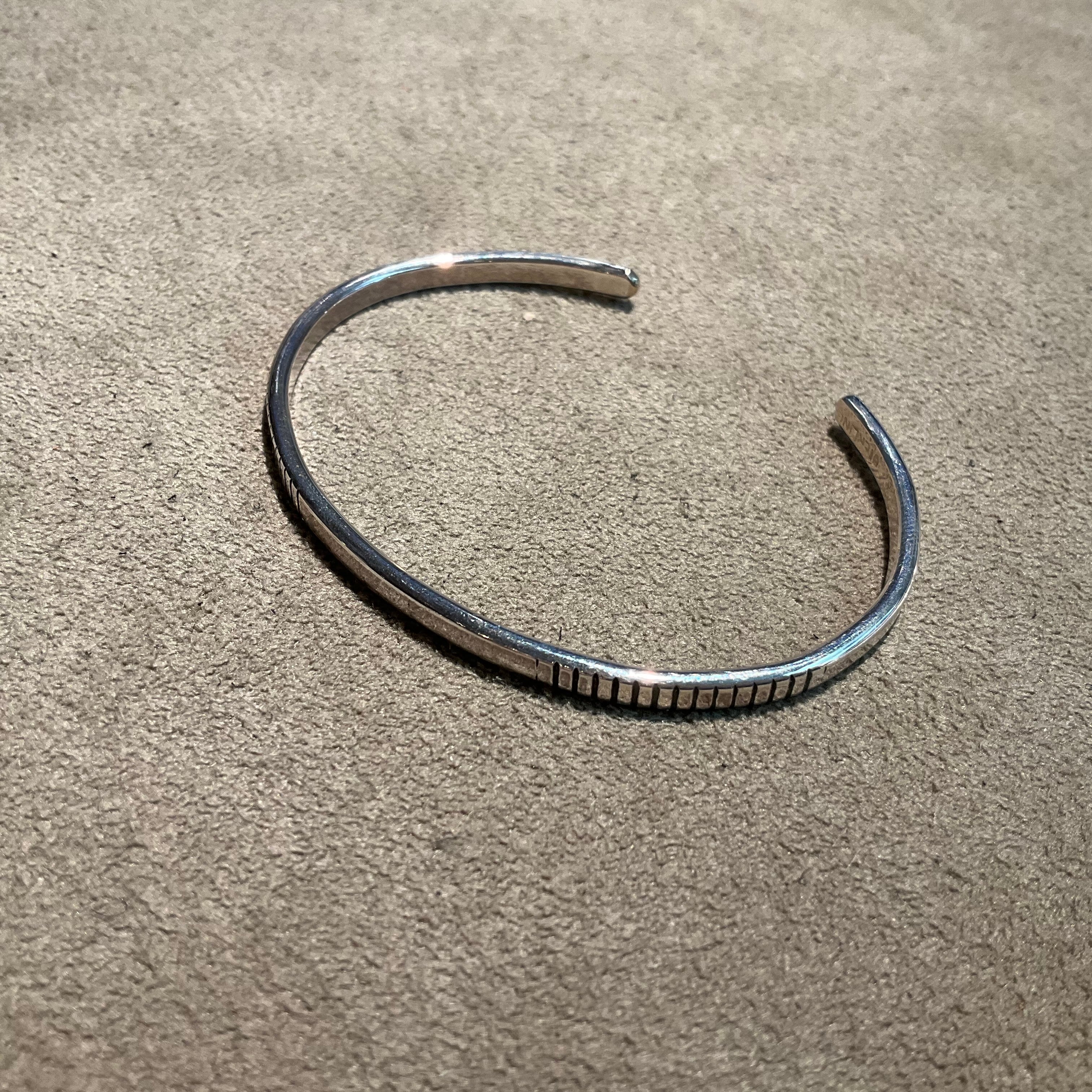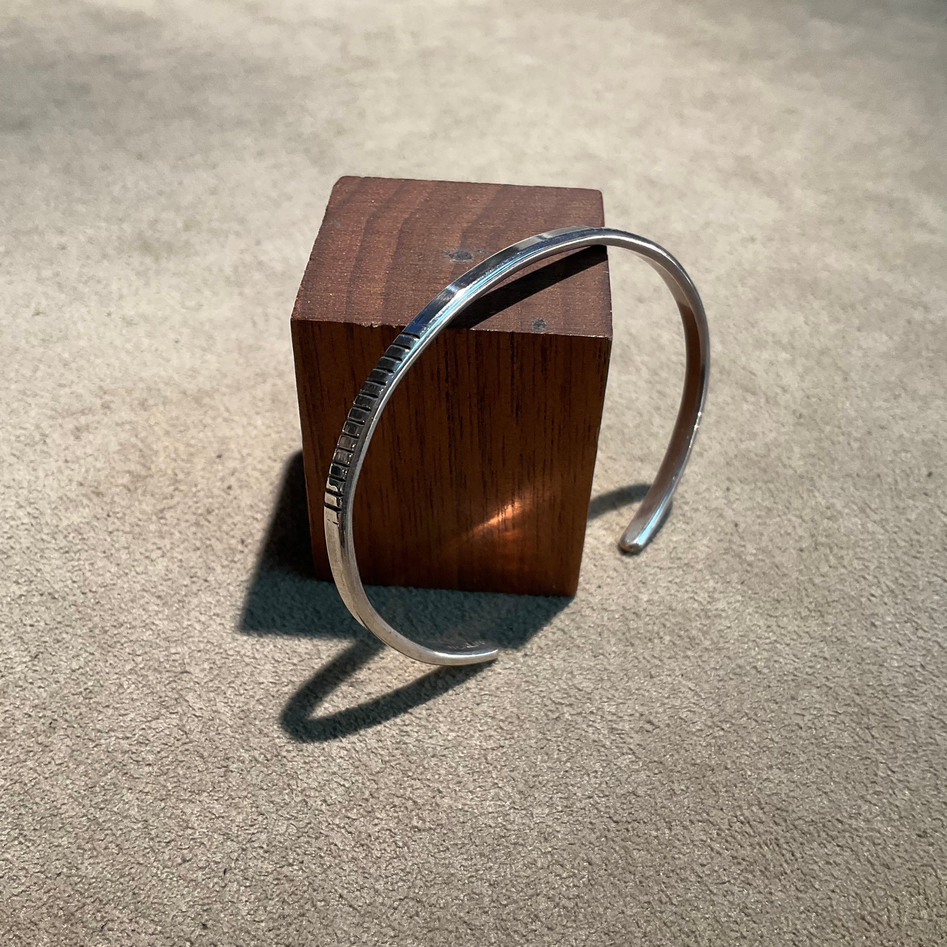 魅力的なビンテージスタイルを持つバングルです。このバングルは、シンプルながらも独特なデザインが特徴で、どんなコーディネートにも自然に溶け込みます。日常使いにはもちろん、特別な日にもぴったりなアイテムです。
