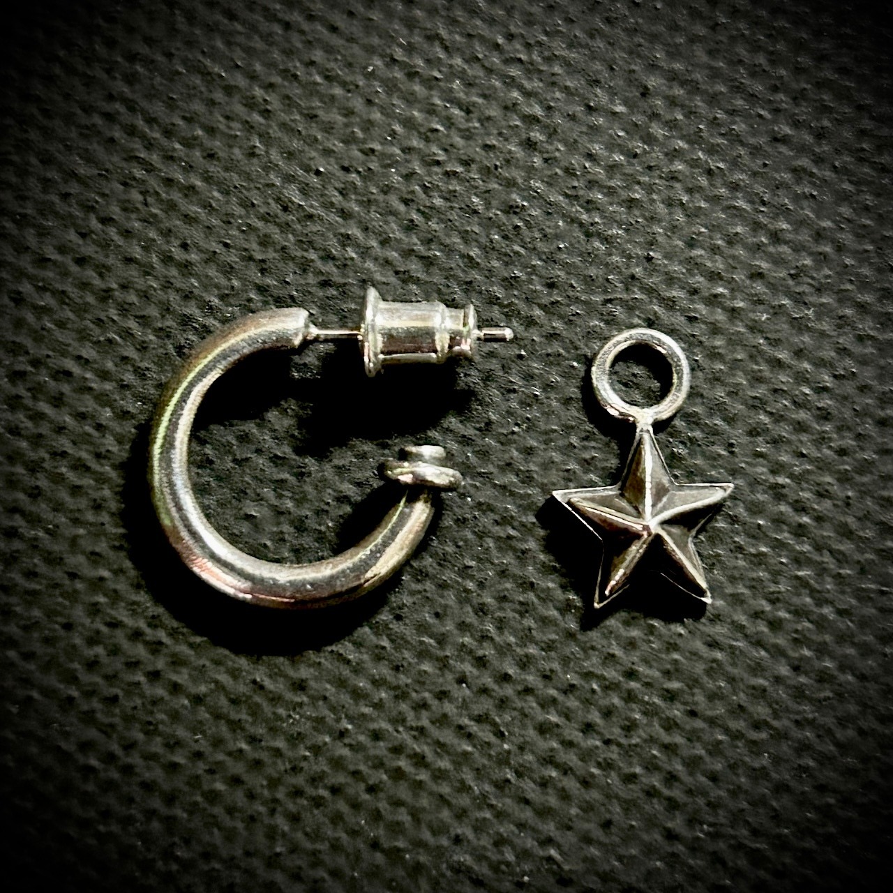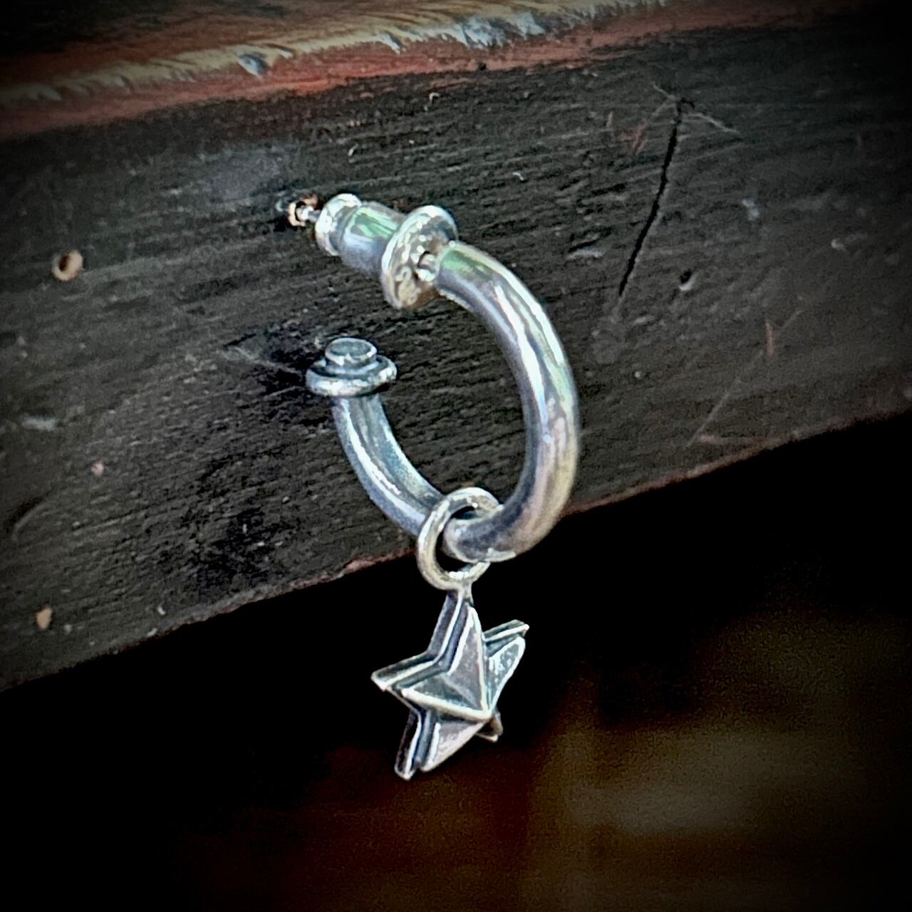 シンプルなフープ型のデザインにstarを組み合わせたピアスです。