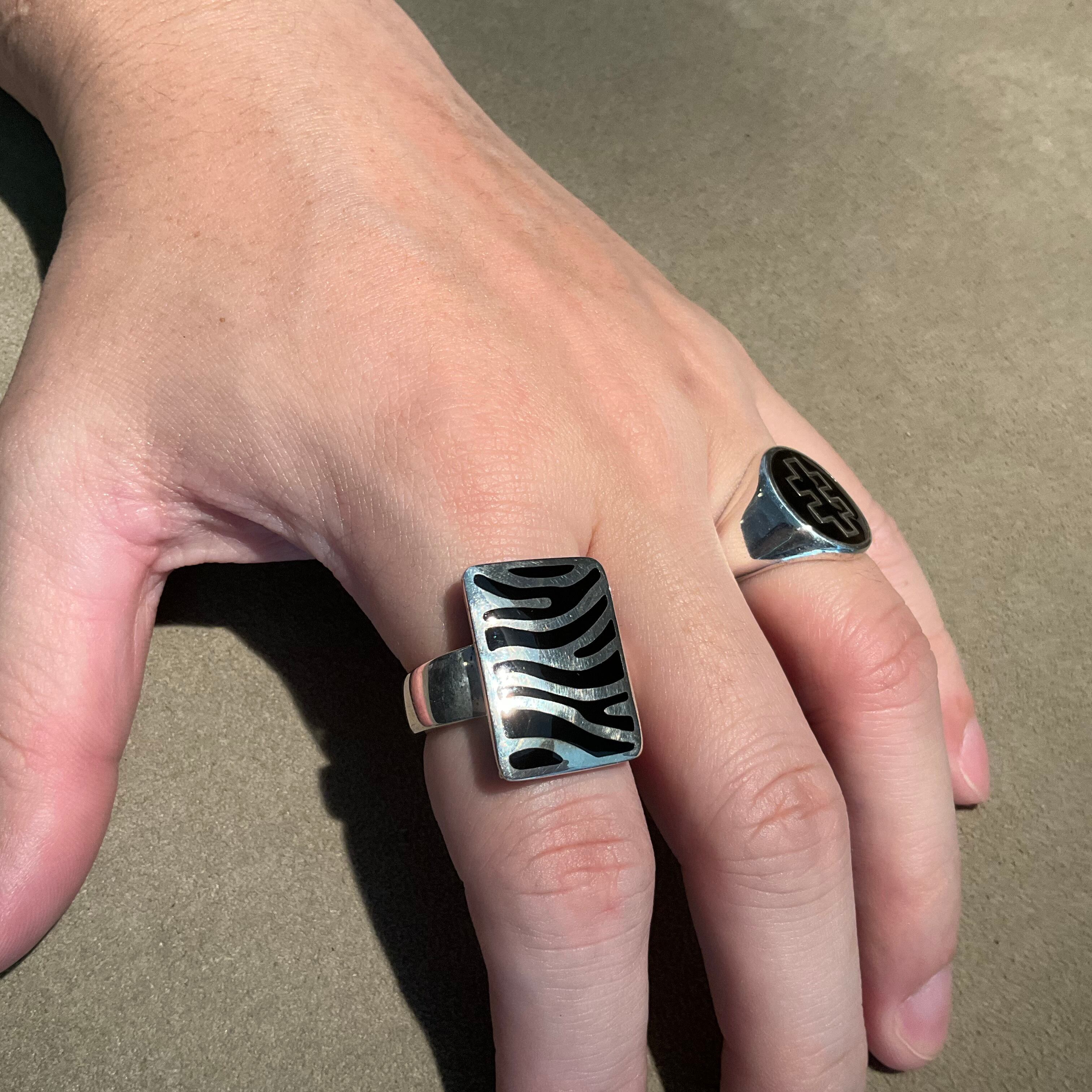 この指輪は、ビンテージ感あふれるゼブラ柄が特徴で、どんなスタイルにも独自の魅力をプラスするジュエリーです。Silver925を使用し、職人による緻密な仕上がりが光ります。存在感たっぷりのデザインは、あなたの指先を美しく飾り、周囲の視線を引きつけることでしょう。