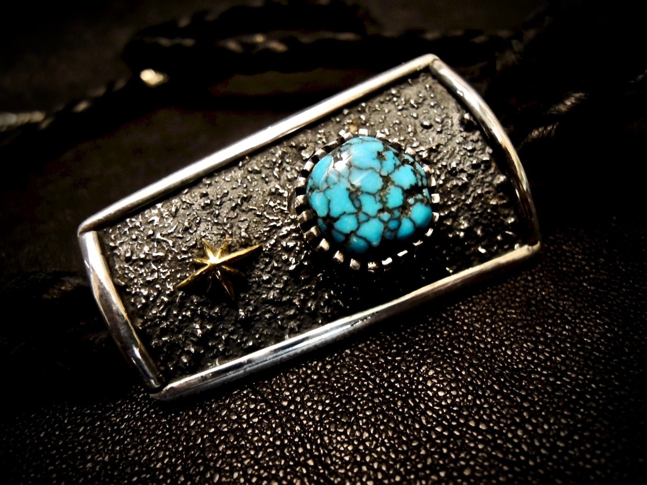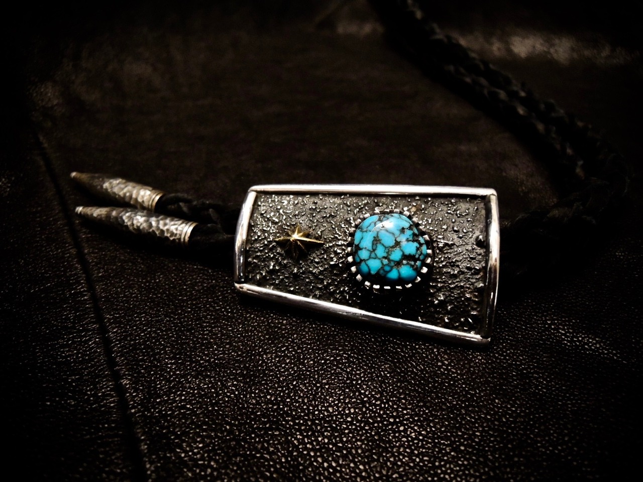 WHEELWORKS ホイールワークス LoneMountain Turquoise BoloTie Texture TufaCast K18Gold BoloChipTexture Loop tie ローンマウンテン ターコイズ ボロータイ インディアンジュエリー ネイティブアメリカン