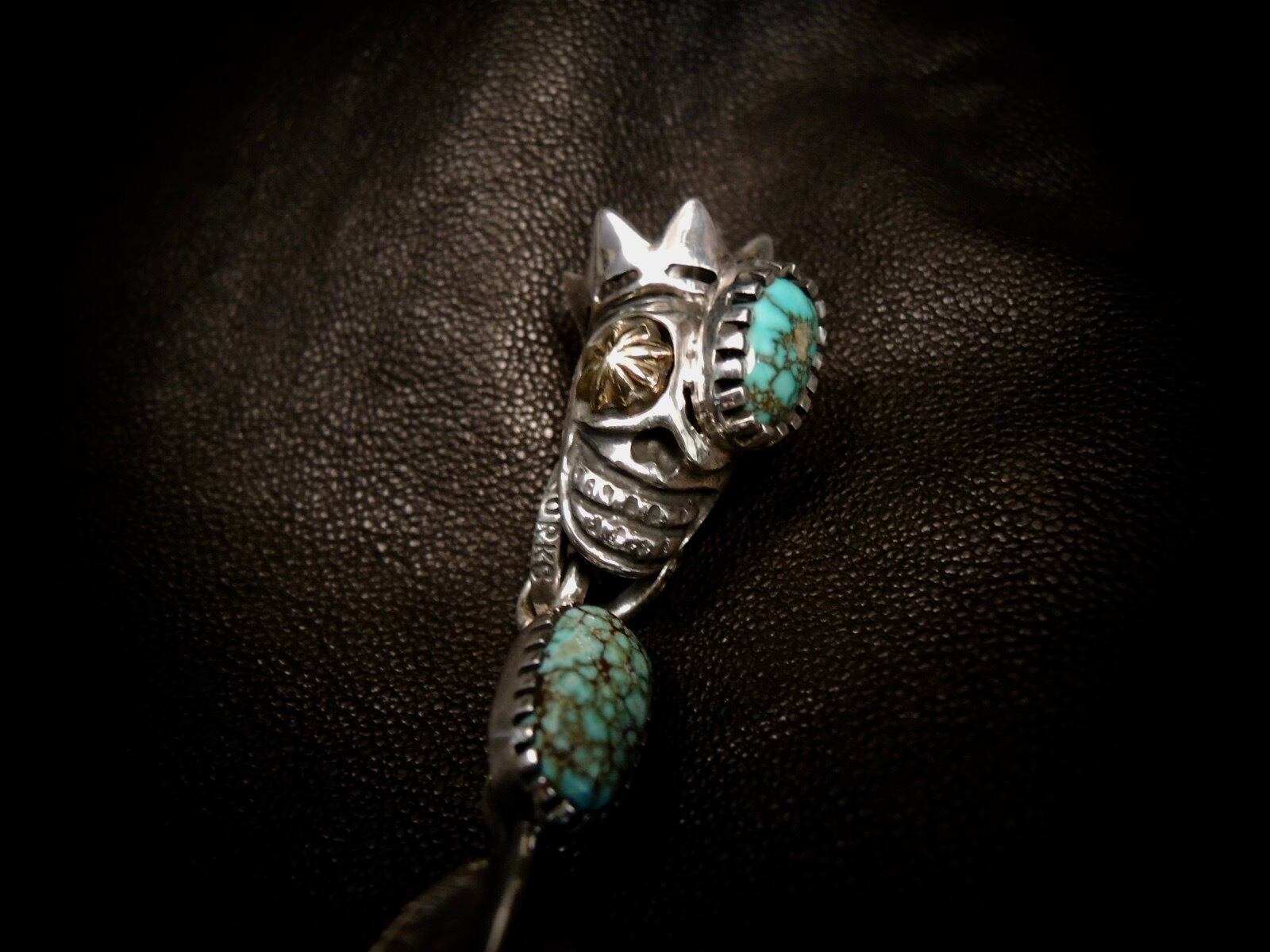 KingMori Skull Pendant K18GoldApolloConcho Number8 Turquoise