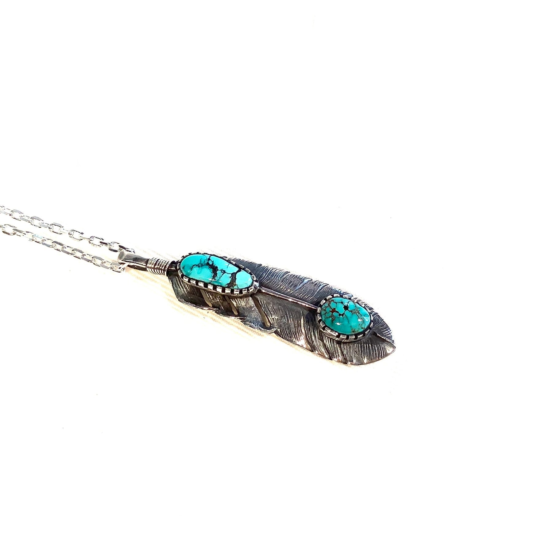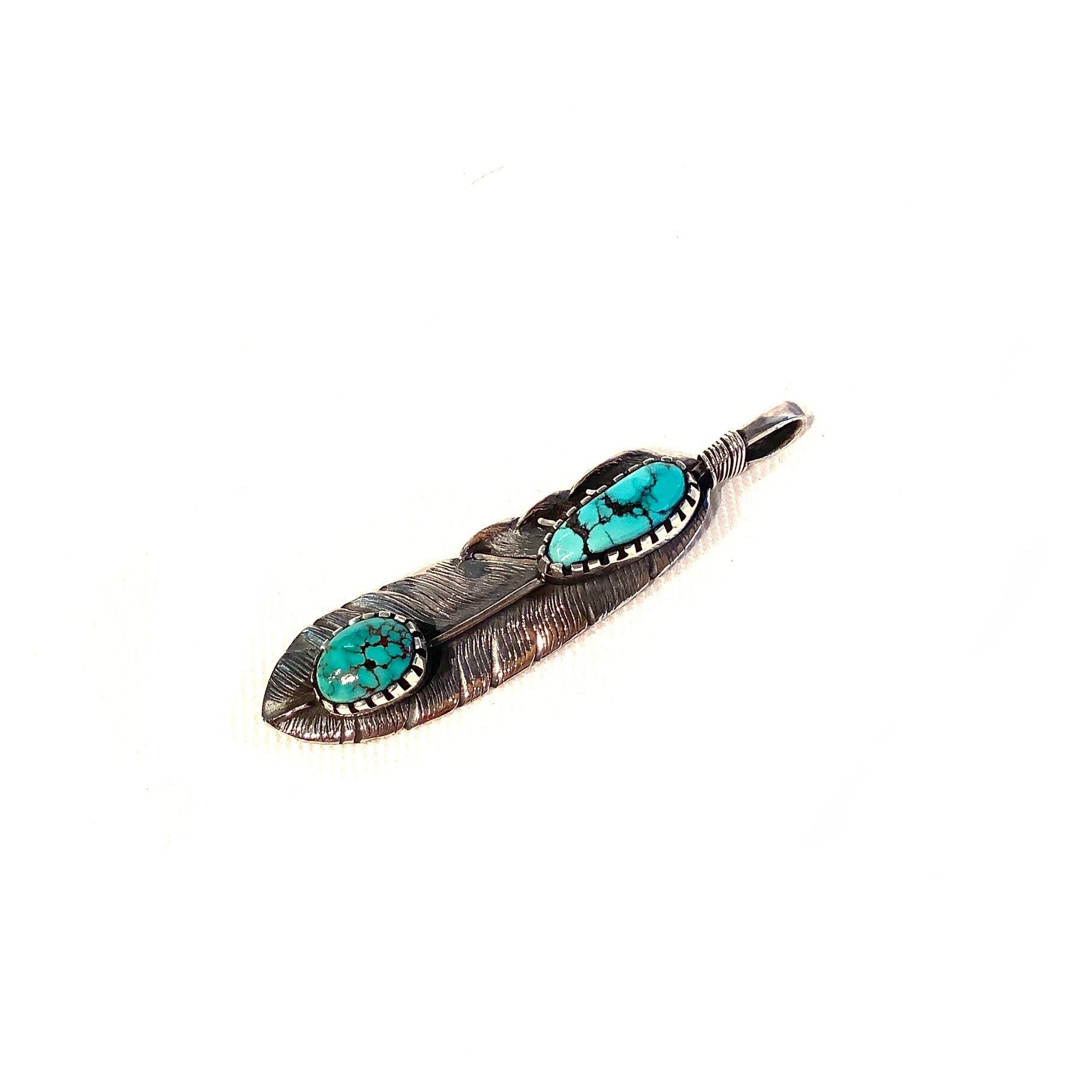 フェザーペンダント クラウドマウンテンターコイズ インディアンジュエリー