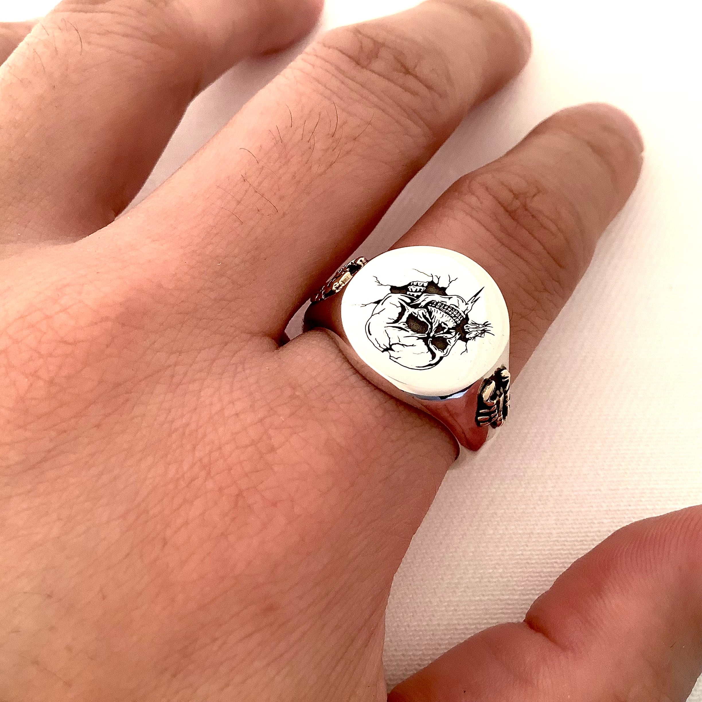 Stacey Hare Jewellery Skull Scorpion Signet Ring 9K Gold SilverJewelry accessory