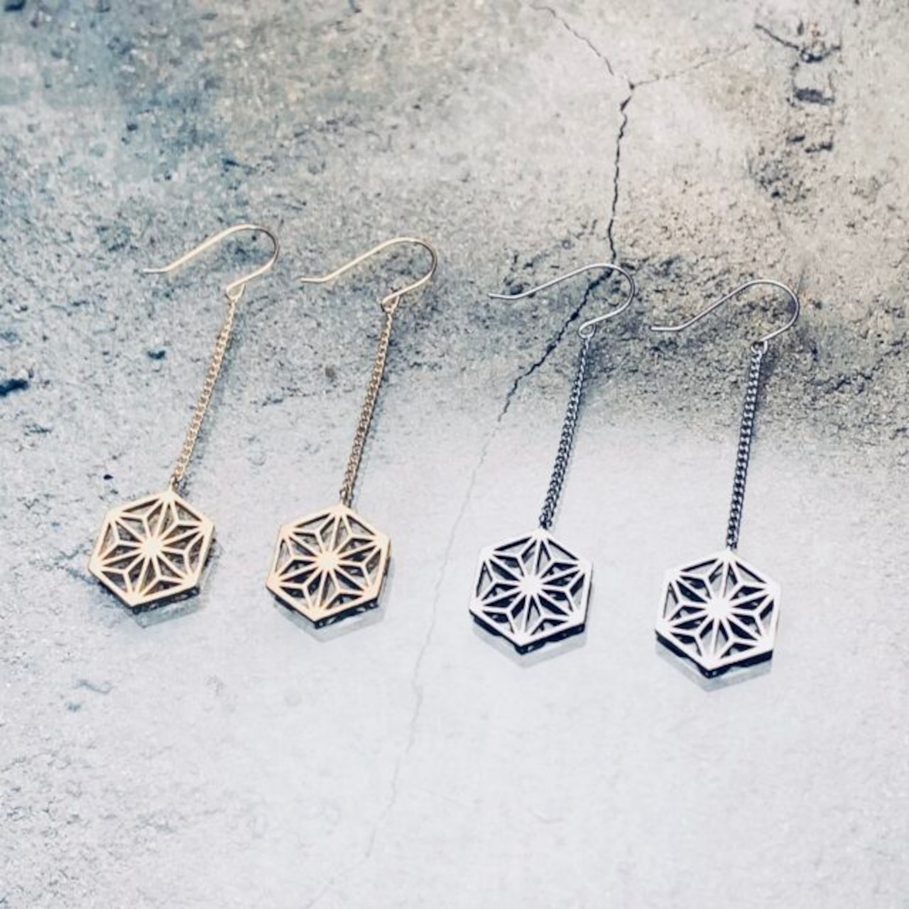 日本の伝統文様「麻の葉」 をモチーフにした耳飾り。