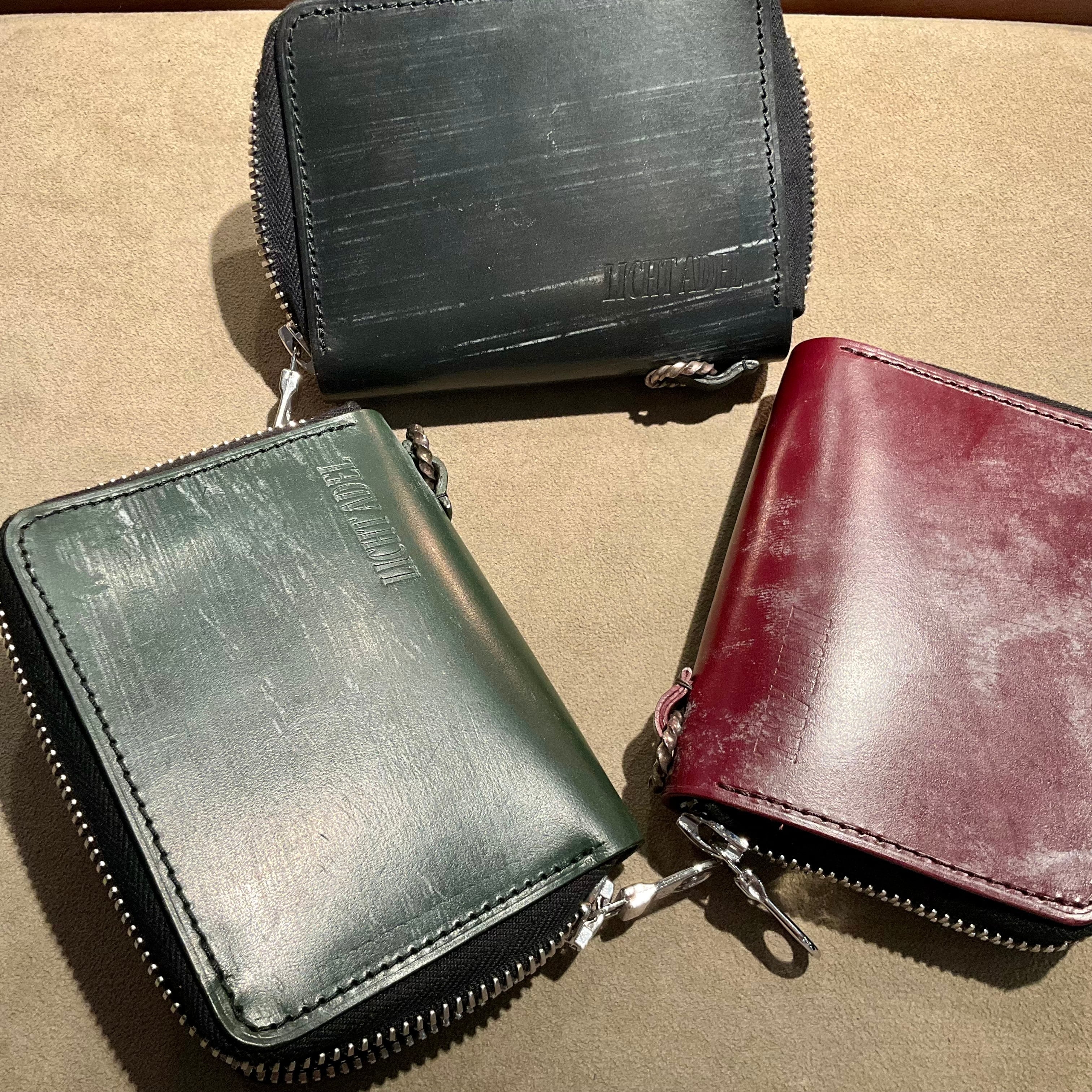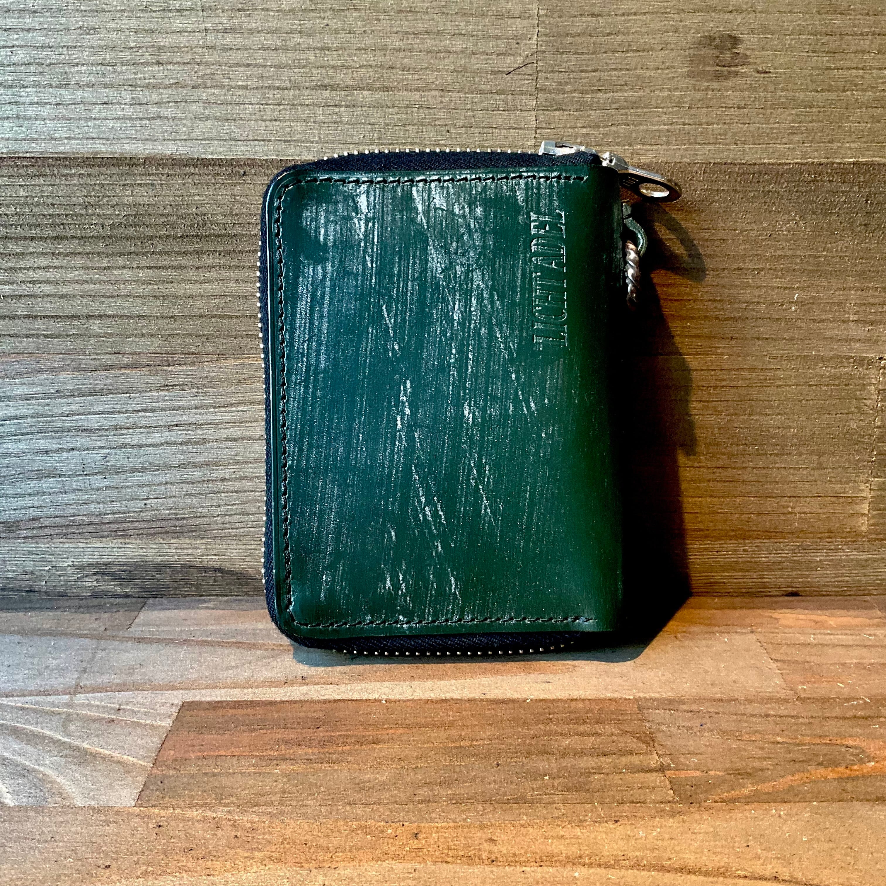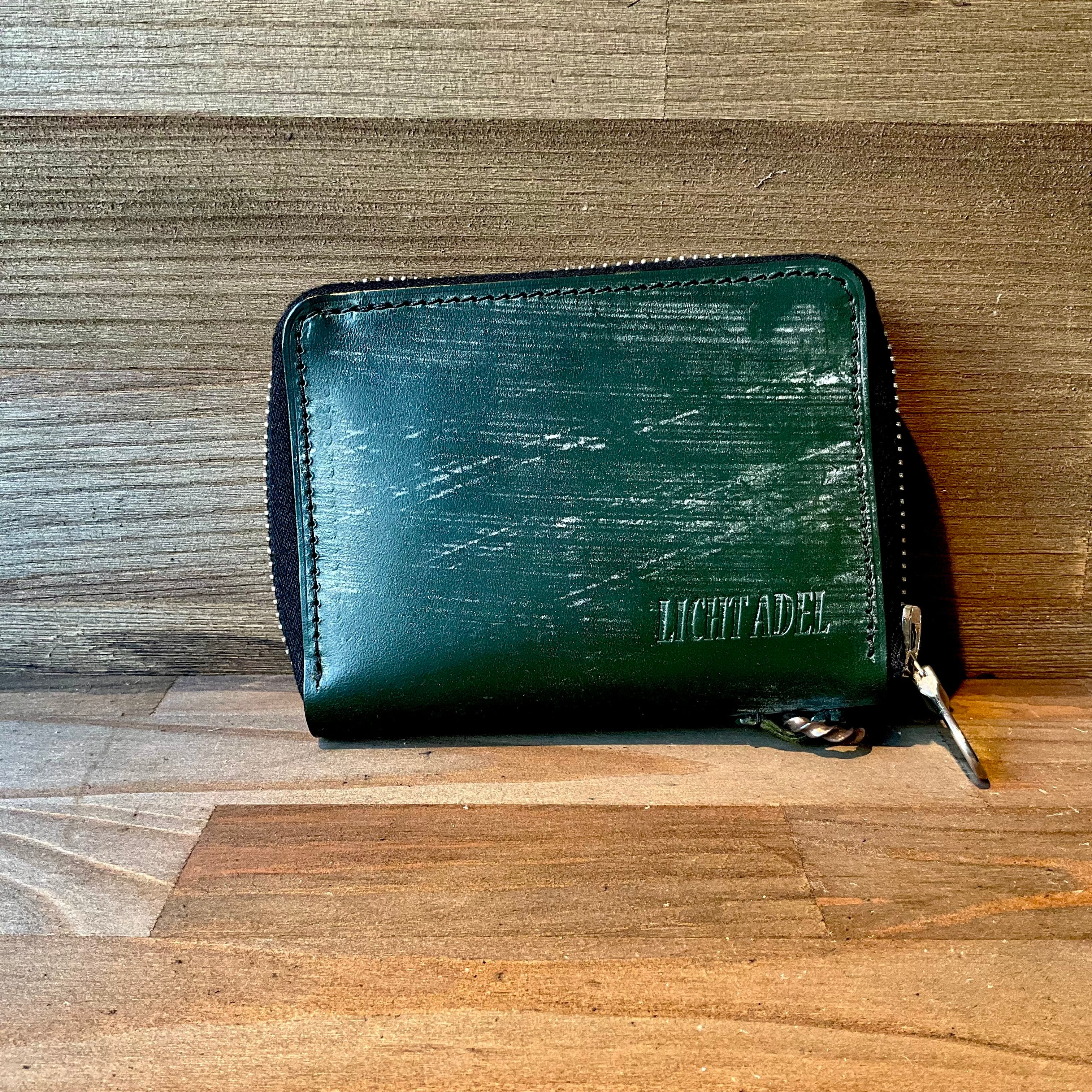Licht Adel Bridle leather Zipper Wallet SilverRing Dark Green medium wallet