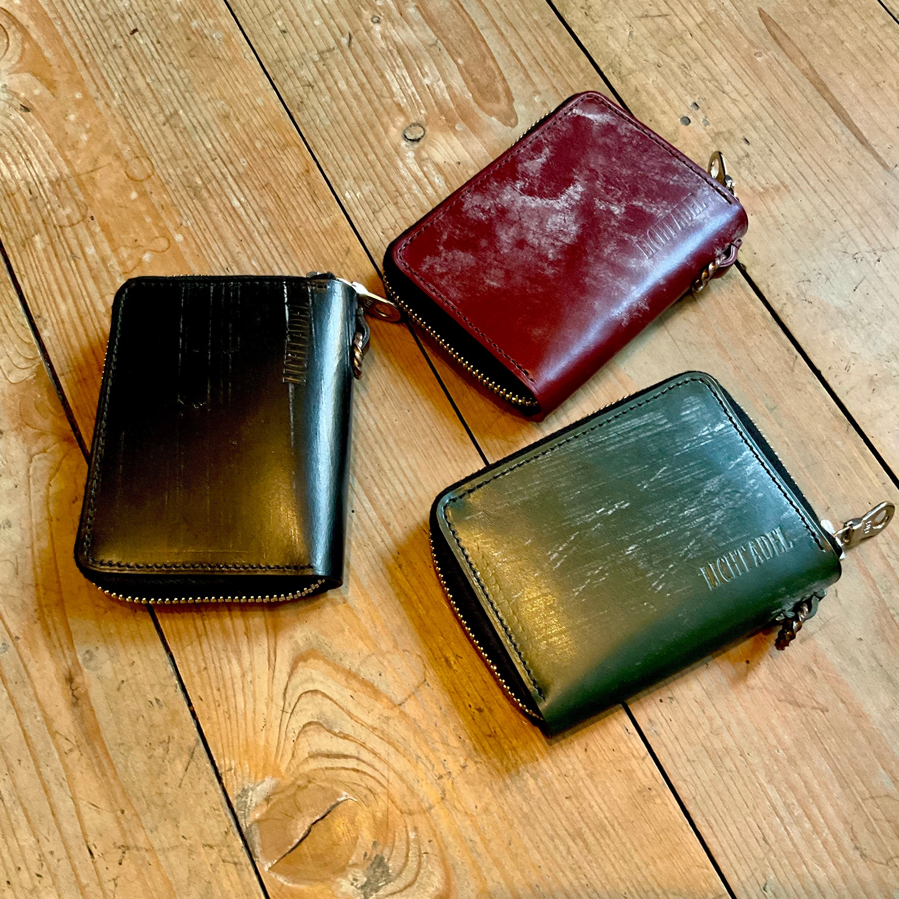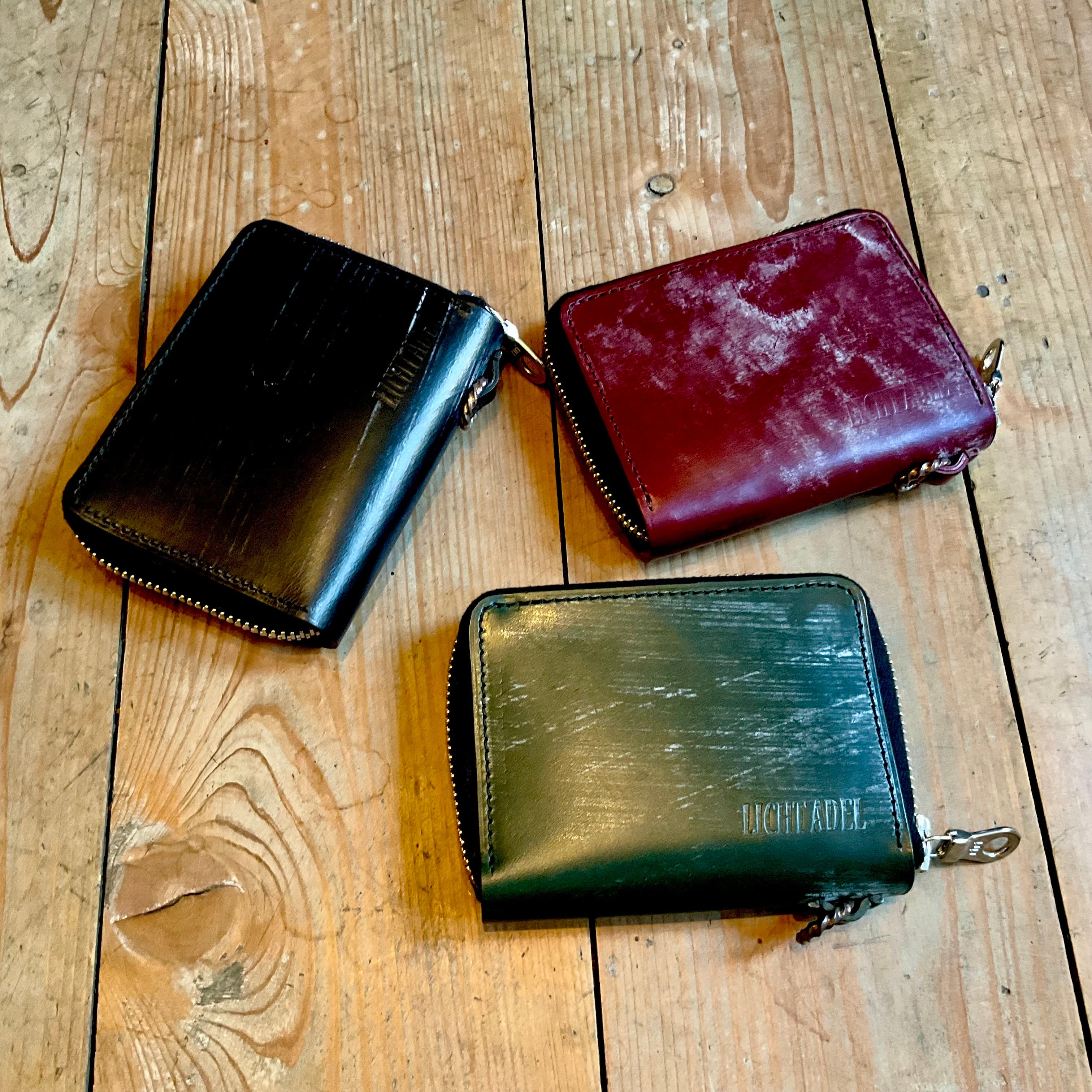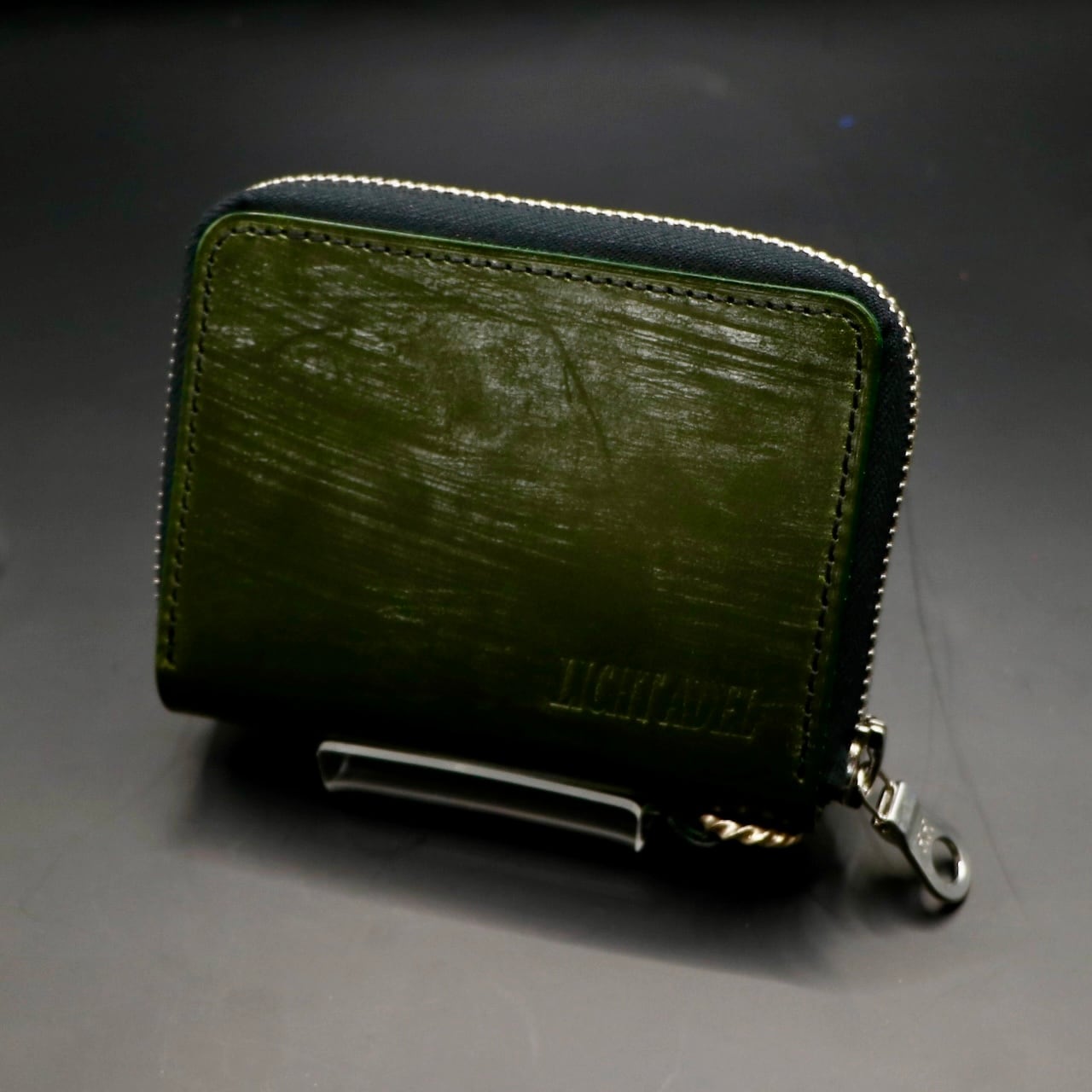 Licht Adel Bridle leather Zipper Wallet SilverRing Dark Green medium wallet