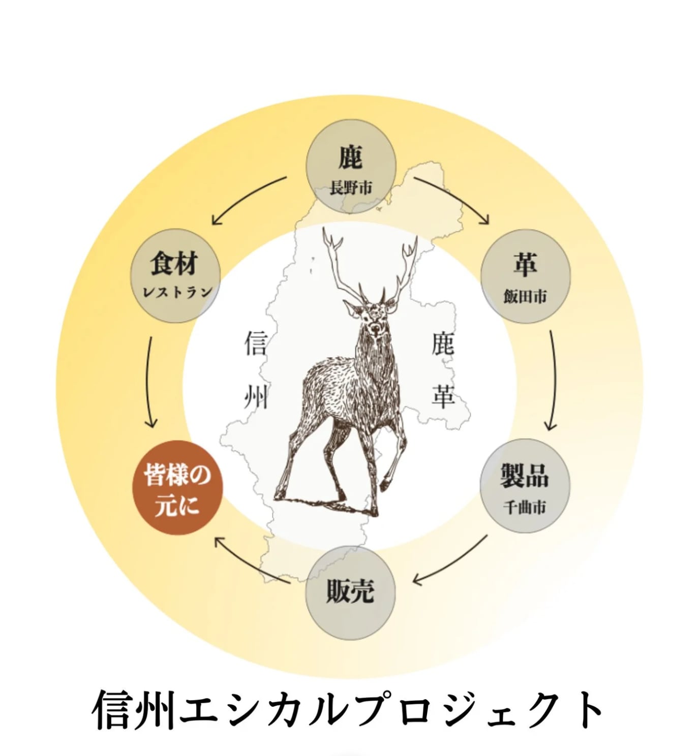 信州鹿革は長野市で加工された革を飯田市でなめした革で、グルーバーレザーの千曲市で仕上げる事で、完全なる地産地消を叶えた革です。
